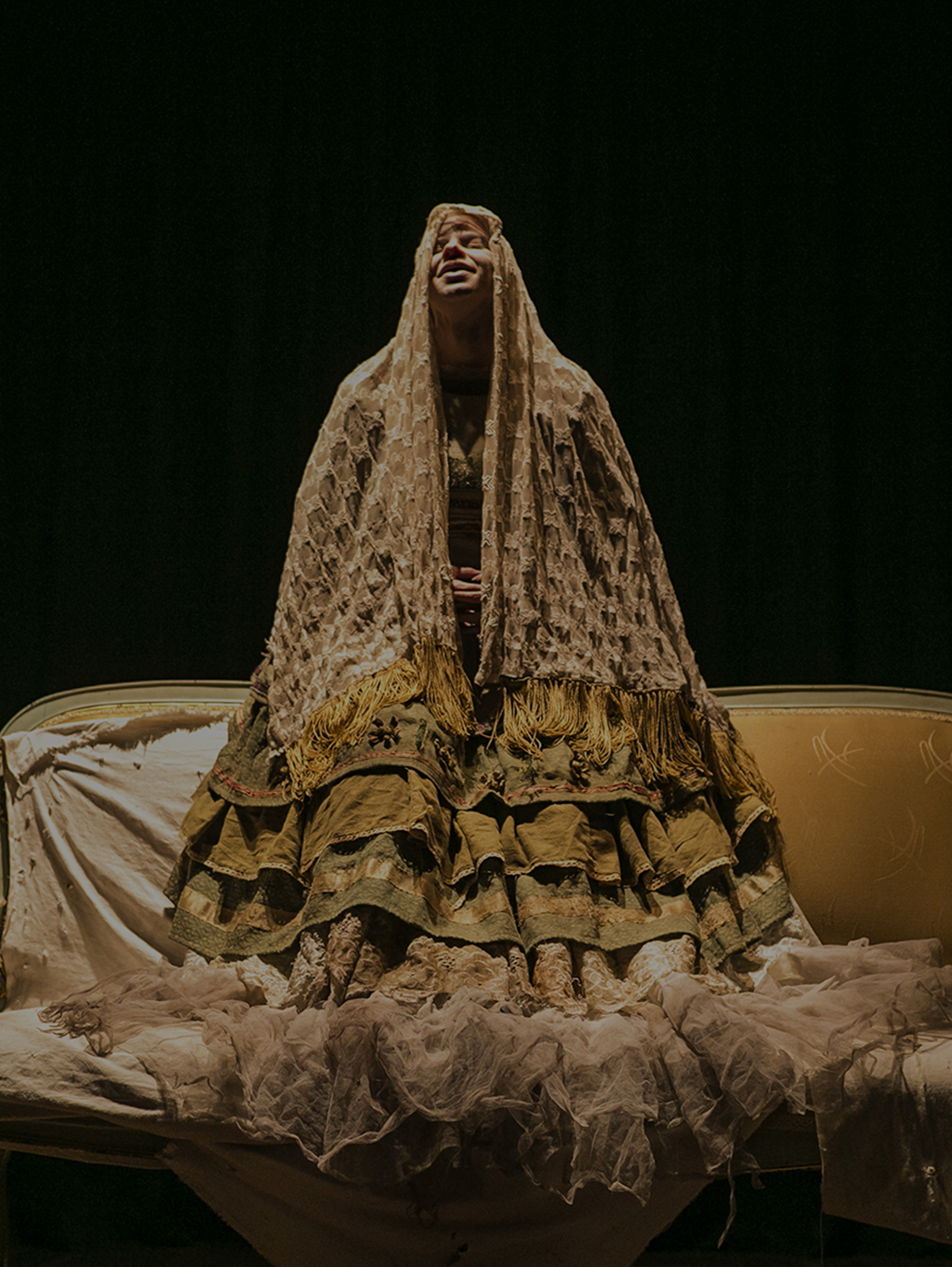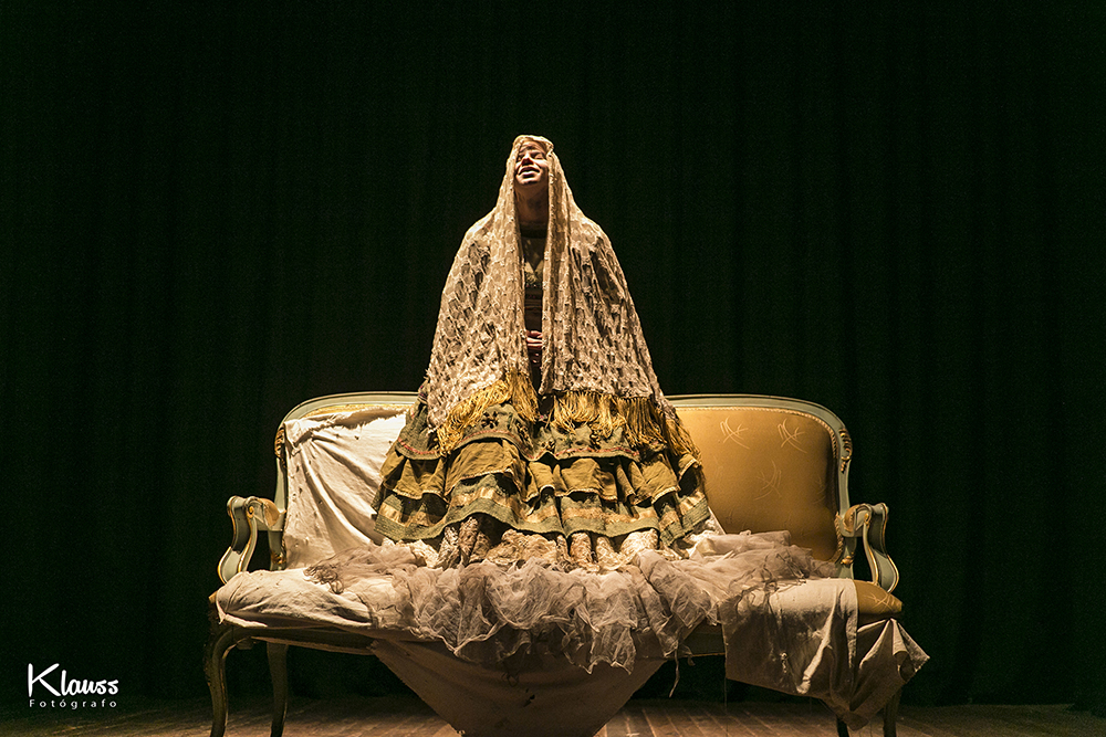Un diván, un espejo y las imágenes que atormentan a María Carlota conforman el mundo de esta obra en la que la historia se va contando con un lenguaje metafórico, poético y desgarrador.